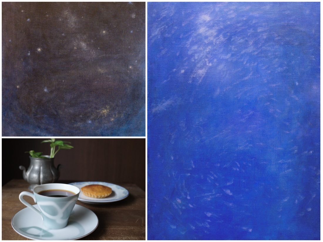 本展では、柳田さんの“珈琲と金木星”をテーマにした絵画が店内を彩り、前半と後半に分けて展示販売されます。